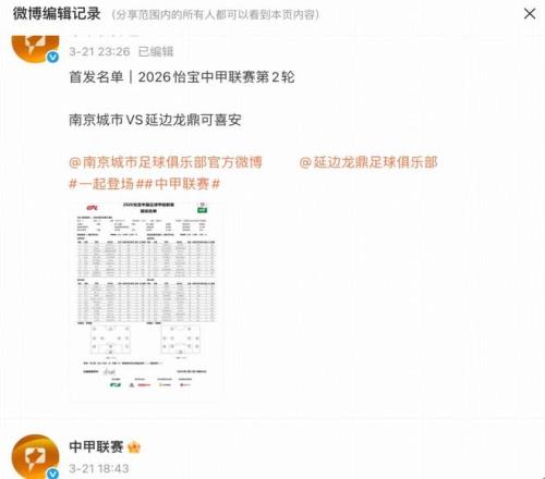南京城市與延邊龍鼎的比賽在3月21日進行,中甲聯賽官方微博賽前發布的首發名單中,延邊外援喬瓦尼是在其中的,但更新后他的名字出現在了替補席,首發的是王子豪。