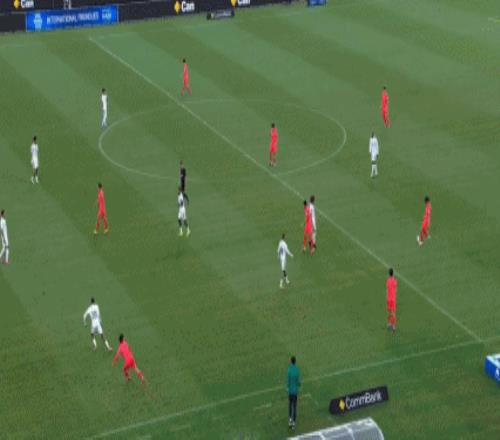 本場比賽第59分鐘, 對方解圍失誤,張玉寧順勢推射破門,國足2-0領先庫拉索!