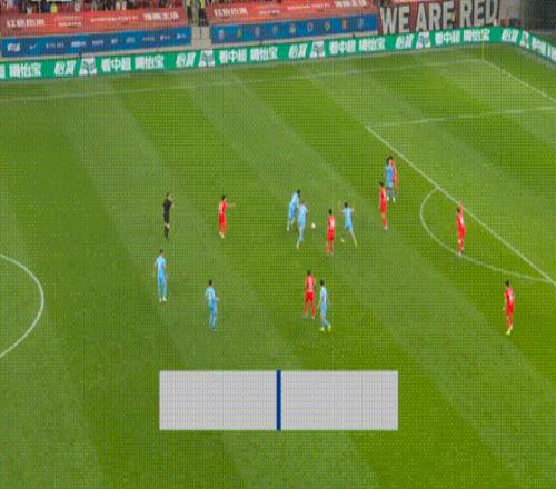 第45+5分鐘,蒯紀聞獲得單刀機會,頂住防守將球打進,而這球最終判定越位在先。