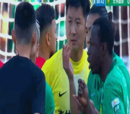 然而,主裁判并未第一時間向韓镕澤出示紅牌或黃牌,這讓北京國安球員非常不滿,長時間圍住主裁判爭辯。最終,主裁判向韓镕澤出示黃牌,并且判罰給北京國安禁區外任意球。