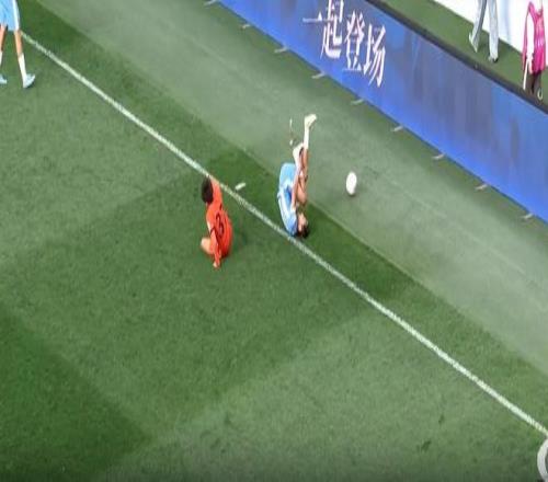 應該說,上半場是一場菜鳥般的比賽,更是一場丑陋的比賽。兩隊上半場幾乎都沒有創造出什么好機會。反而在上半場第29分鐘,何超倒地后向裁判投訴,通過慢鏡頭來看,這確實是一個比較明顯的肘擊動作,但主裁判未予理睬,從而引起了球迷很大的質疑。