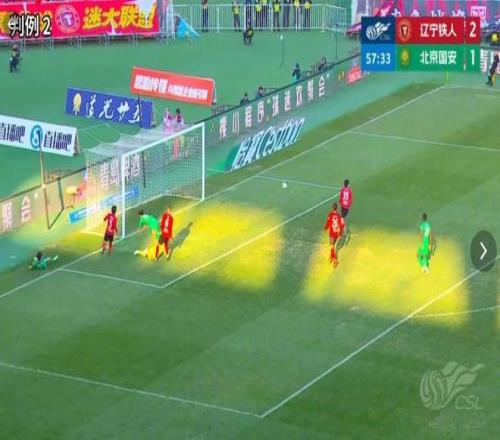 本期評議中,有兩個判例涉及中超第4輪遼寧鐵人主場與北京國安的比賽。其中第一個判例發(fā)生在比賽下半場第58分鐘,林良銘禁區(qū)左側(cè)傳中被韓镕澤撲出,隨后曹永競與倒地的韓镕澤相撞,主裁判判罰曹永競犯規(guī)而吹停比賽,隨后國安繼續(xù)進(jìn)攻并將皮球打進(jìn),但進(jìn)球最終被取消。