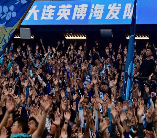 2025年11月22日,大連英博海發隊球迷在比賽中為球隊加油助威。 當日,在遼寧大連舉行的2025賽季中國足球協會超級聯賽第30輪比賽中,上海海港隊客場1比0戰勝大連英博海發隊,獲得本賽季中超聯賽冠軍。 新華社記者 吳青昊 攝
