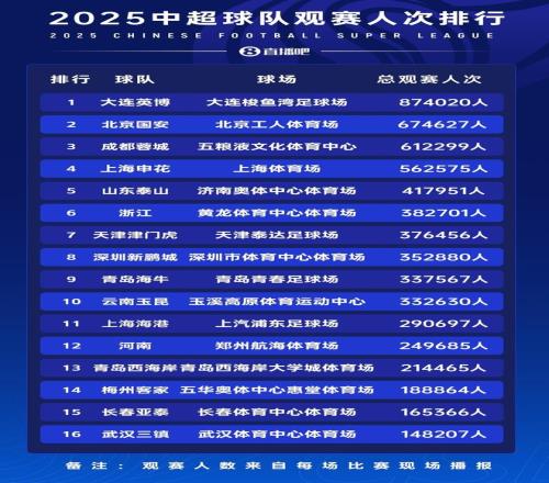 2025賽季,中超總的觀眾上座率還是高于“蘇超”聯賽,畢竟中超是全國范圍內的職業賽事。